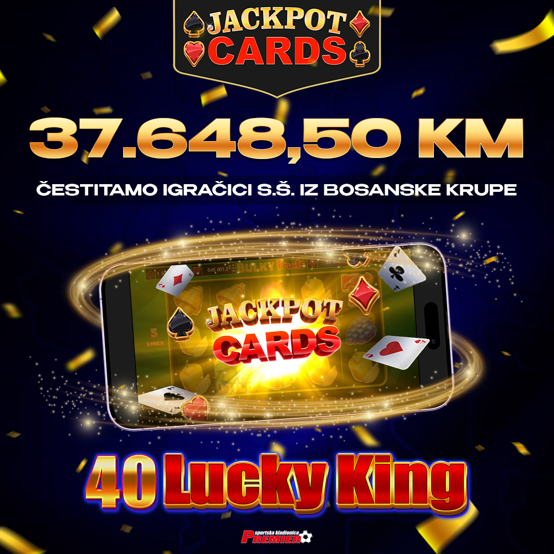 Čestitamo igračici S.Š. koja je u igri 40 Lucky King na ulogu od 0,40 KM po spinu osvojila Jackpot treće razine u iznosu od 37.648,50 KM!